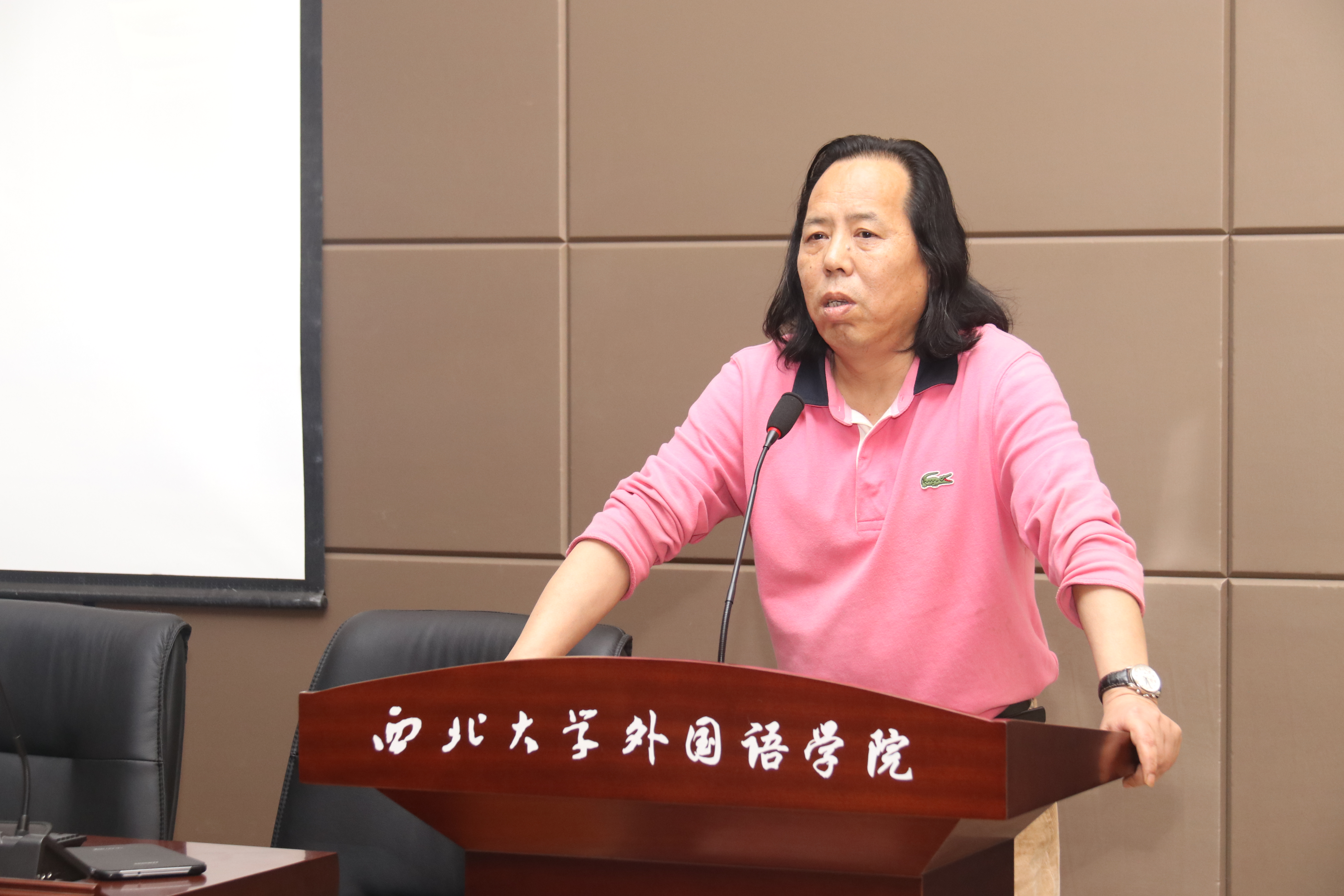 启动仪式上,陕西省翻译协会常务副主席马珂在致辞时指出,在中美关系紧张的局势下,海伦•斯诺研究的意义更为凸显,它是一种维持并促进两国人民友谊的桥梁。陕西省翻译协会前主席、“海伦•斯诺翻译奖”竞赛的发起人和出题人安危老师为在场师生带来精彩专题讲座。安危老师就本次英译汉赛题,解密了海伦•斯诺的笔名之谜,分享了他翻译名人传记的体会。最后,第六届“海伦•斯诺翻译奖”竞赛奖学金获得者,西安宝鸡文理学院的张文雅讲述了她在南犹他大学的留学经历和感受。