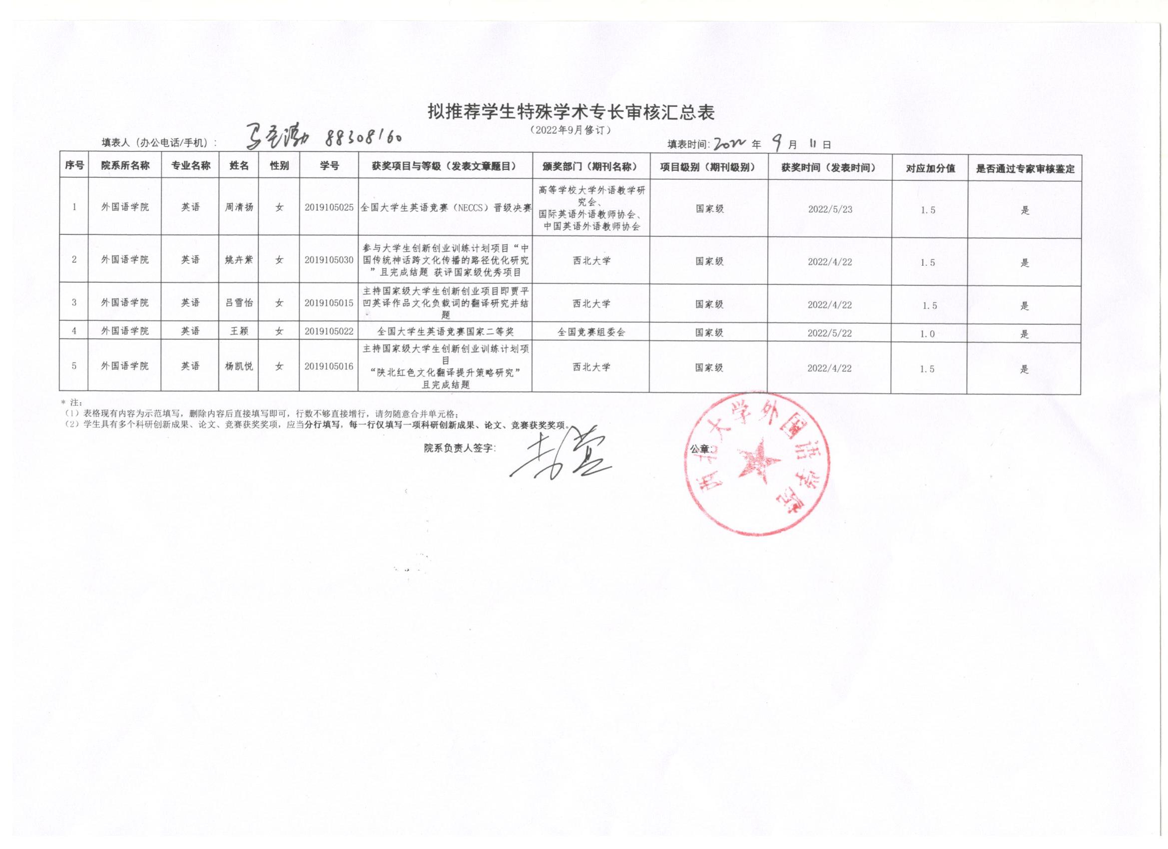公示期为2022年9月11日至14日。如有异议,请向新捕京3522com学生工作办公室反映。电话029-88308160